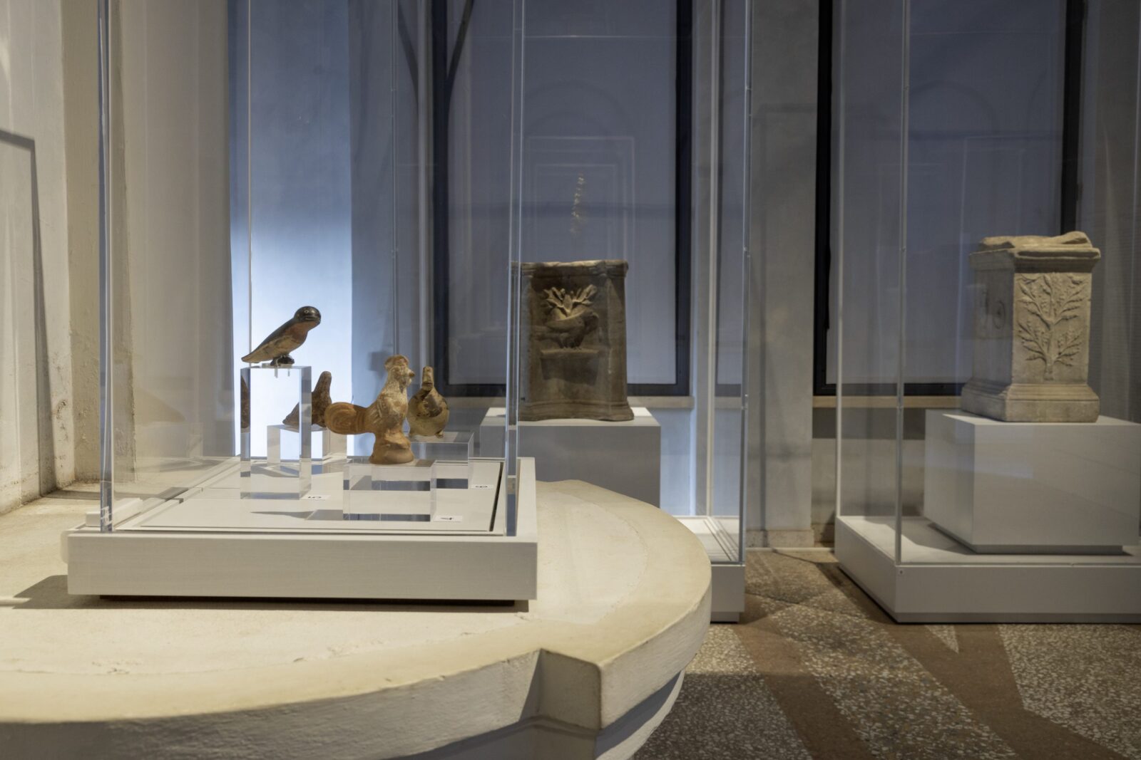 Queste figure, che sembrano provenire da un altrove remoto e immobile, dialogano in mostra con una selezione di sculture antiche che arricchiscono l’esposizione: statue, balsamari, are e sonagli di epoca romana, provenienti dal Museo Nazionale Romano, dal Museo Archeologico di Venezia e dal Museo Nazionale Etrusco di Villa Giulia. In questo confronto, non cronologico ma spirituale, si rivela il legame profondo tra le culture antiche e la visione di Brancusi: gli uccelli, animali sacri e intermediari tra l’umano e il divino, sono qui portatori di messaggi ultraterreni, simboli di un anelito che è sogno e bisogno. Il volo diventa l’immagine dell’ascensione, del superamento del confine, della tensione dell’uomo verso l’infinito.