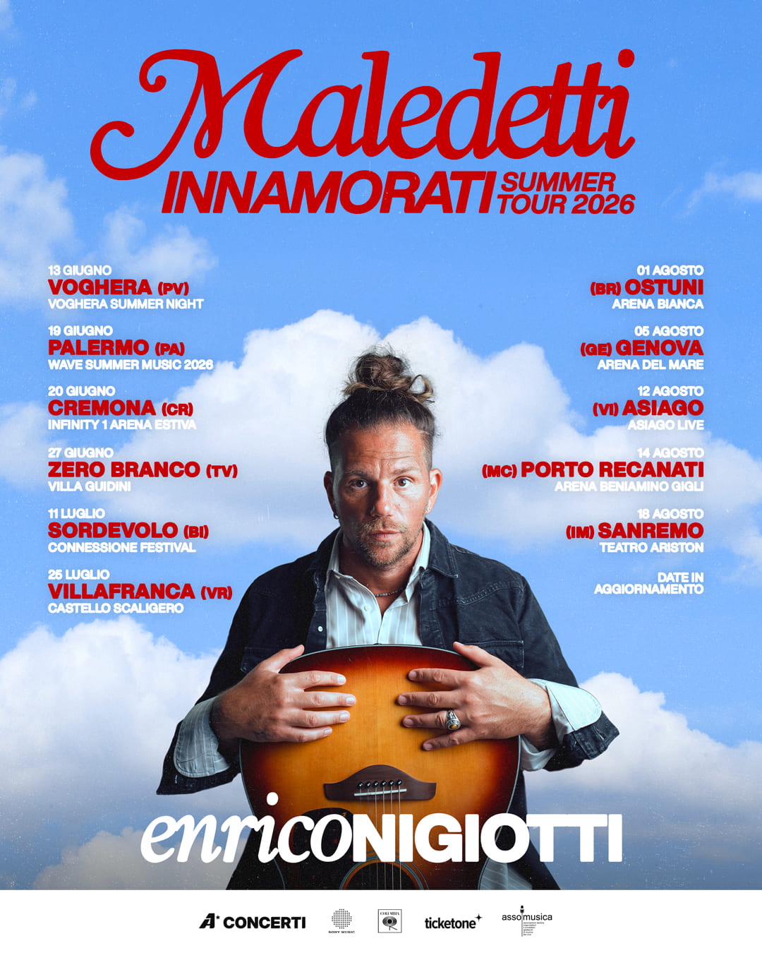 Dopo aver annunciato il grande appuntamento di “A casa” a Livorno, in programma il 21 novembre 2026 al Modigliani Forum, Enrico Nigiotti svela oggi un’altra attesissima novità: il ritorno sui palchi con il “Maledetti Innamorati Summer Tour 2026”.