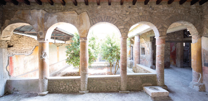 “Storie di confini. L’insula I 17 e il suo contesto” (a firma di Antonella Coralini) propone un aggiornamento sugli esiti del progetto di scavo e ricerca che dal 2019 l’Università di Bologna segue sull’insula I 17 di Pompei, in continuità con il lavoro svolto dall’Alma Mater sull’insula IX 8 fra il 1998 e il 2017. La finalità del progetto è quella di indagare le microstorie della dialettica fra spazi pubblici e proprietà private in una città antica, esaminando gli aspetti tecnici e costruttivi della sua rete di strade, in una prospettiva diacronica. L’insula I 17 è stata scelta, nello specifico, in ragione della sua posizione nel tessuto urbano di Pompei, della sua interessante anomalia nella forma e del suo offrire uno dei due soli casi noti a Pompei di peristilio ad arcate, presente nella Casa degli Archi (I 17, 4).