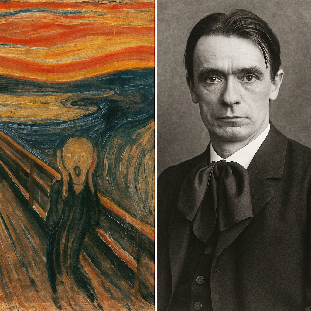 Già nei diari, Munch scrive: “L’arte nasce dal sangue e dalle lacrime degli uomini. Ciò che non si vede è più vero di ciò che si vede.” Questo monito potrebbe essere trascritto senza forzature all’interno delle conferenze sull’estetica spirituale di Steiner, che invita gli artisti a “vedere con l’anima”. Per entrambi, l’opera d’arte non è imitazione naturalistica, bensì attivazione di forze profonde: in Steiner, quelle del mondo eterico e dell’immaginazione cosciente; in Munch, quelle dell’emotività e della coscienza tragica.