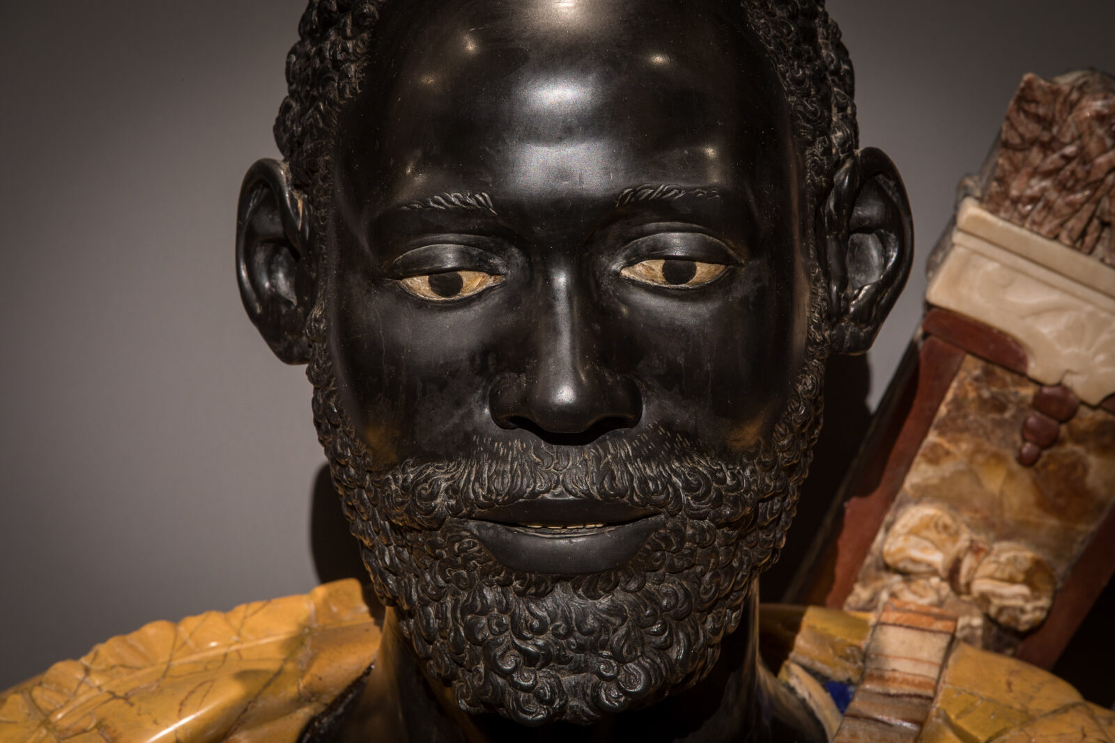 Il busto di Antonio Manuel Ne Vunda, ambasciatore del Regno del Congo, è l’ingresso silenzioso in questa storia. Scolpito da Francesco Caporale nel 1608 e prestato per la prima volta dalla Basilica di Santa Maria Maggiore, dopo un restauro condotto da Ales S.p.A., si impone come figura sorgiva: un corpo nero, ieratico, accolto in un contesto liturgico romano. Non una curiosità esotica, ma una presenza concreta, politica, affettiva. Davanti al suo sguardo, tutto il percorso si carica di densità: ogni oggetto diventa eco, riscrittura, distanza che si avvicina.