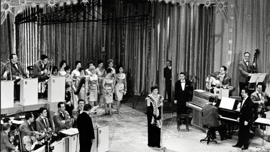 Nilla Pizzi vinse quella prima edizione con Grazie dei fiori. La canzone italiana, allora, era ancora debitrice della romanza, del melodramma, della vocalità impostata. La Rai trasmetteva via radio, la televisione sarebbe arrivata solo nel 1954. Eppure, già in quegli anni, Sanremo cominciava a costruire un’identità: una liturgia fatta di orchestra in platea, direttori in frac, presentatori eleganti e un pubblico che ascoltava in silenzio, come a teatro.