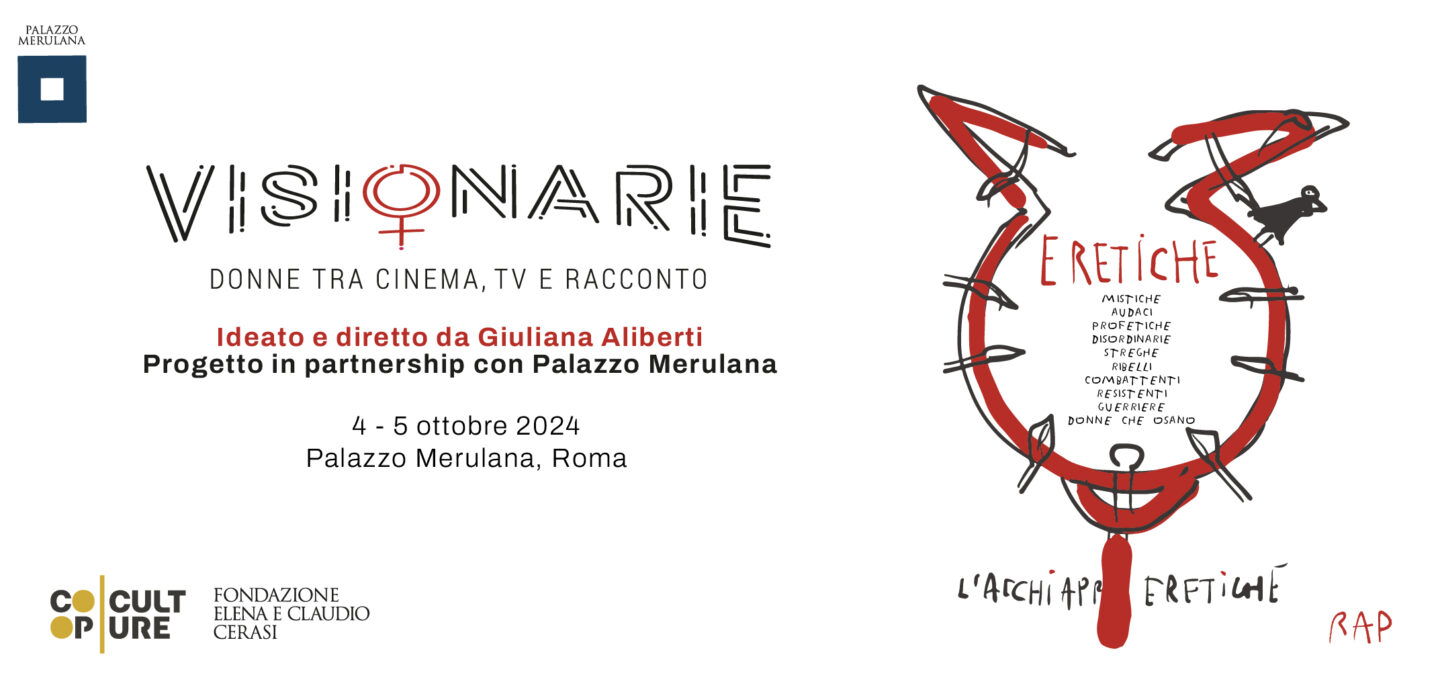 Palazzo Merulana, sede della Fondazione Elena e Claudio Cerasi, gestito e valorizzato da Coopculture, ospita la 4ª edizione di “Visionarie”. Sarà “Eretiche” il titolo della nuova edizione di “Visionarie”, la rassegna ideata e diretta da Giuliana Aliberti, dedicata alle donne del cinema, della tv e del racconto, che si terrà a Palazzo Merulana il 4 e 5 ottobre.